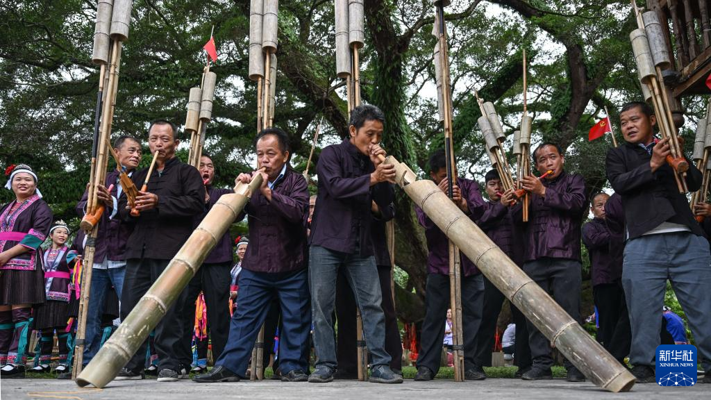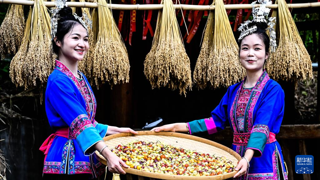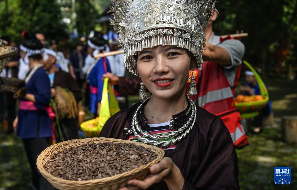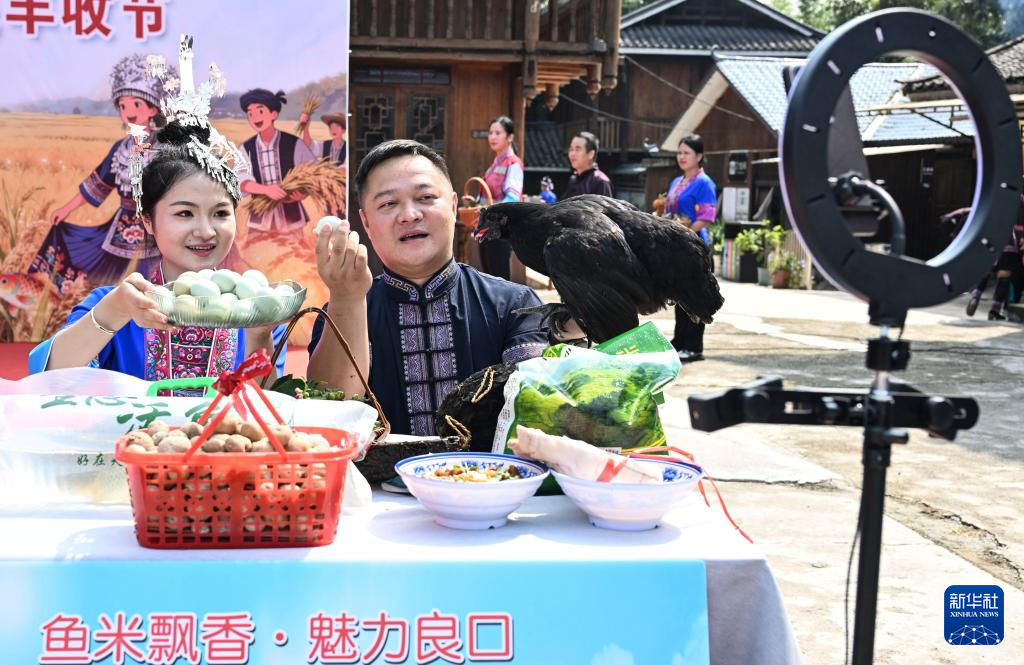 10月17日,廣西三江侗族自治縣5個鄉(xiāng)鎮(zhèn)的群眾聚集在良口鄉(xiāng)產(chǎn)口村,開展形式多樣的慶豐收活動。