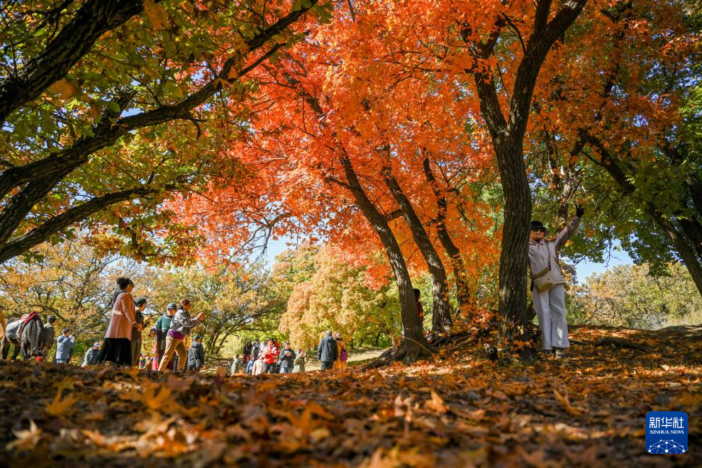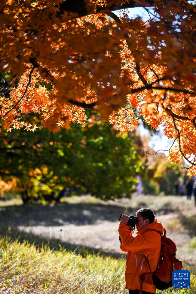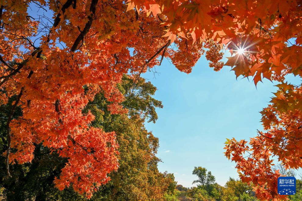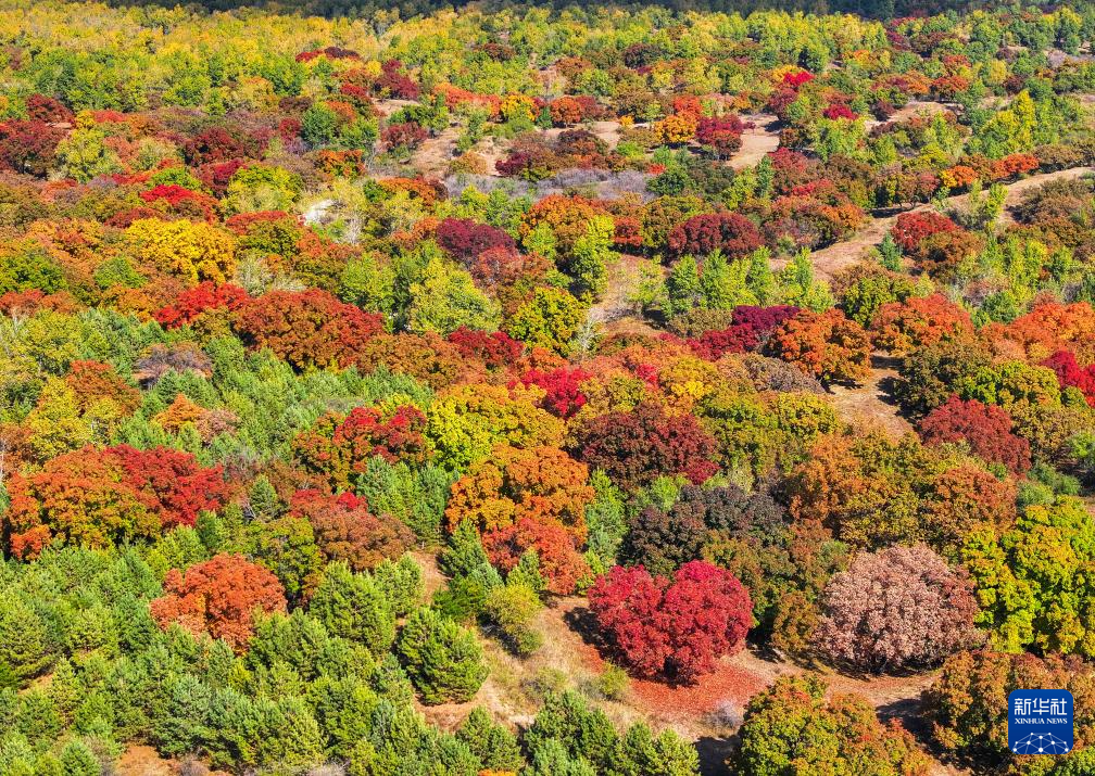 這是10月18日拍攝的烏旦塔拉五角楓森林公園美景(無人機照片)。