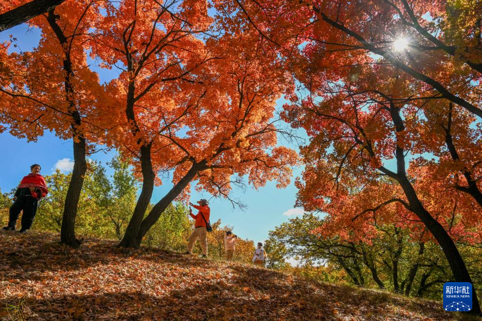 時值深秋,位于內(nèi)蒙古自治區(qū)通遼市科爾沁左翼后旗的烏旦塔拉五角楓森林公園迎來一年中最美的時節(jié),棵棵楓樹點綴秋日草原,美如童話。