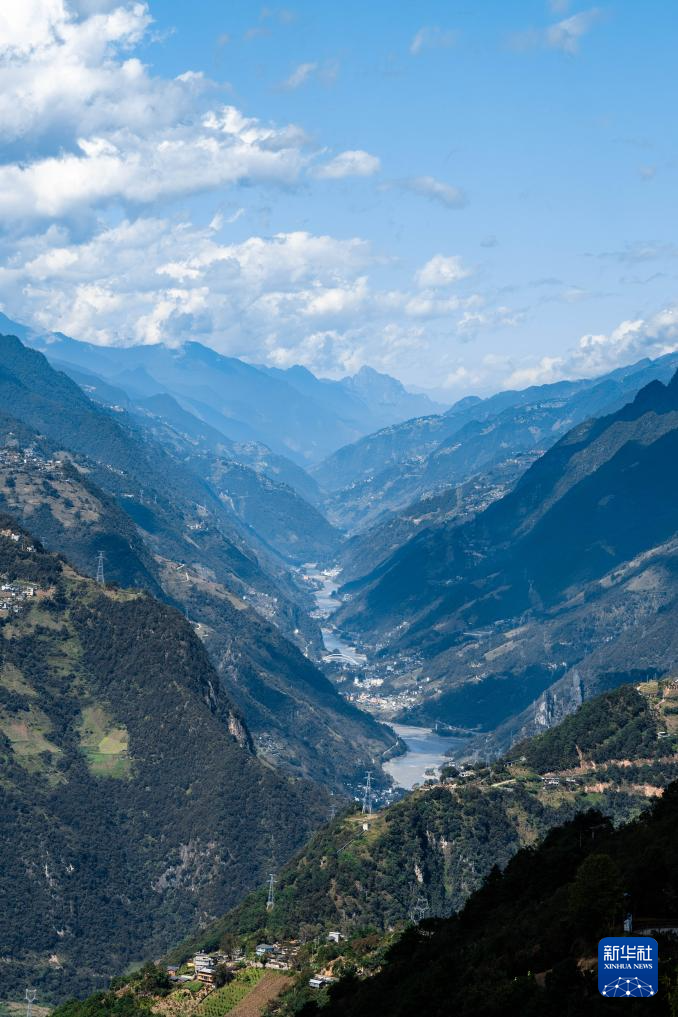 空中俯瞰依山而建的老姆登村(無人機(jī)照片,10月20日攝)。