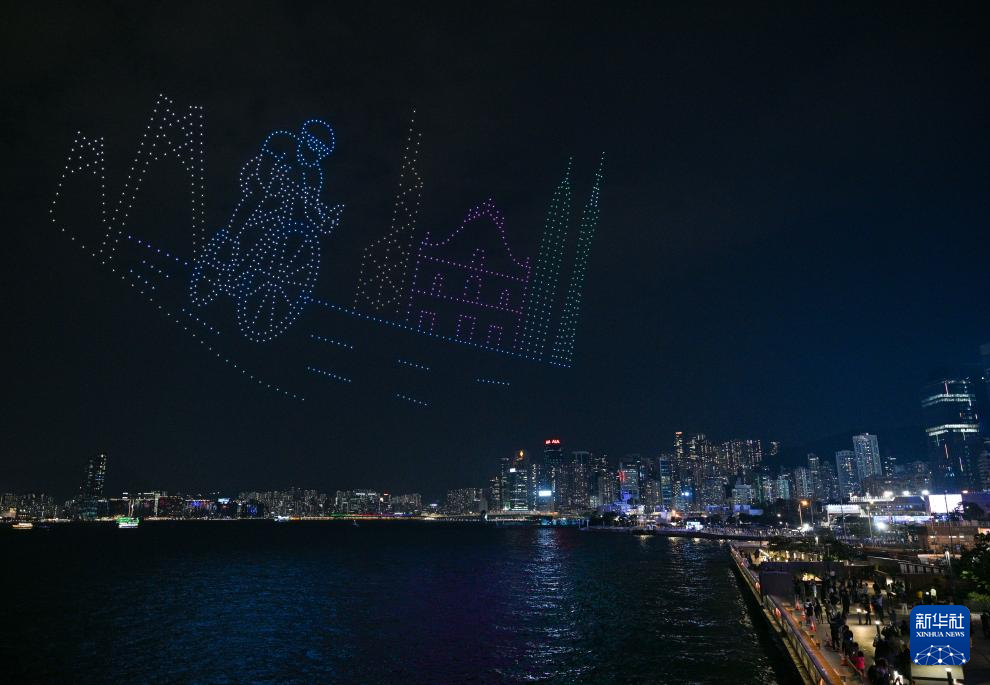 香港舉行“體育力量 閃耀香江”大型無人機(jī)表演