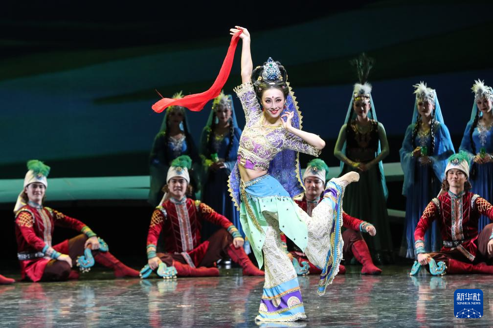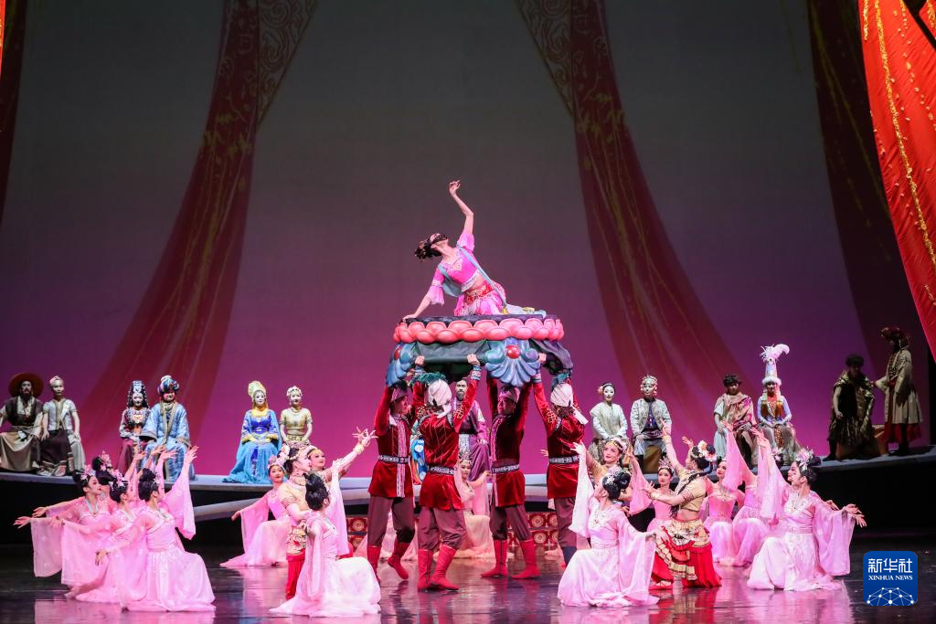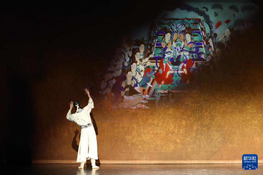11月28日晚,演員在甘肅大劇院表演2025年新版舞劇《絲路花雨》。