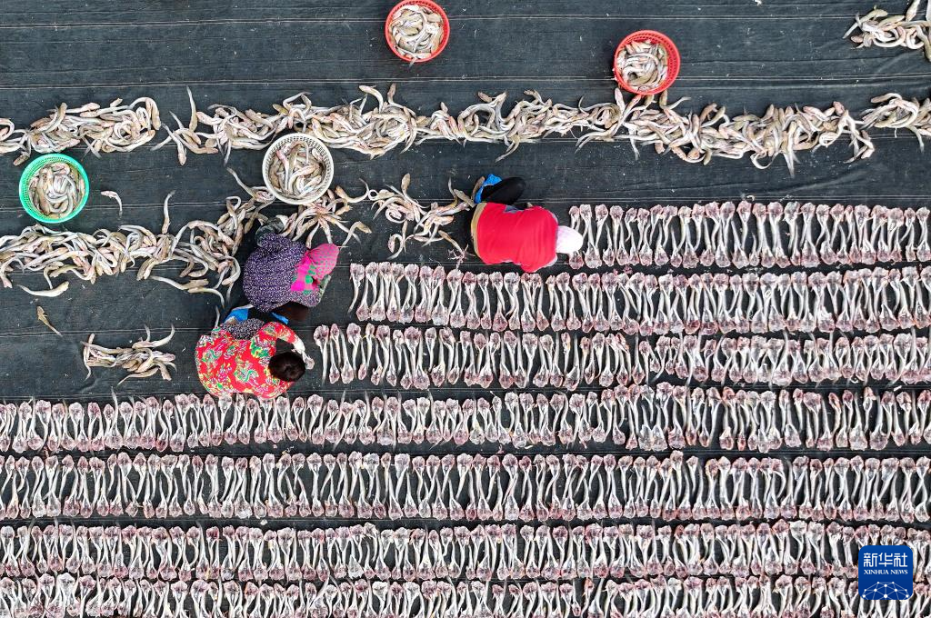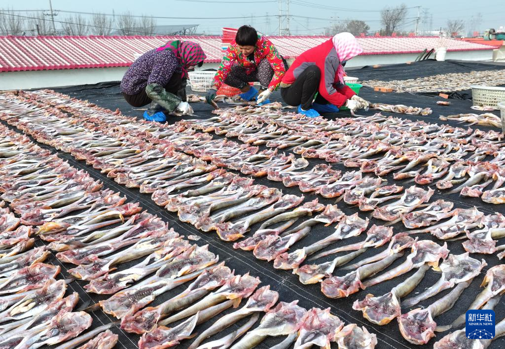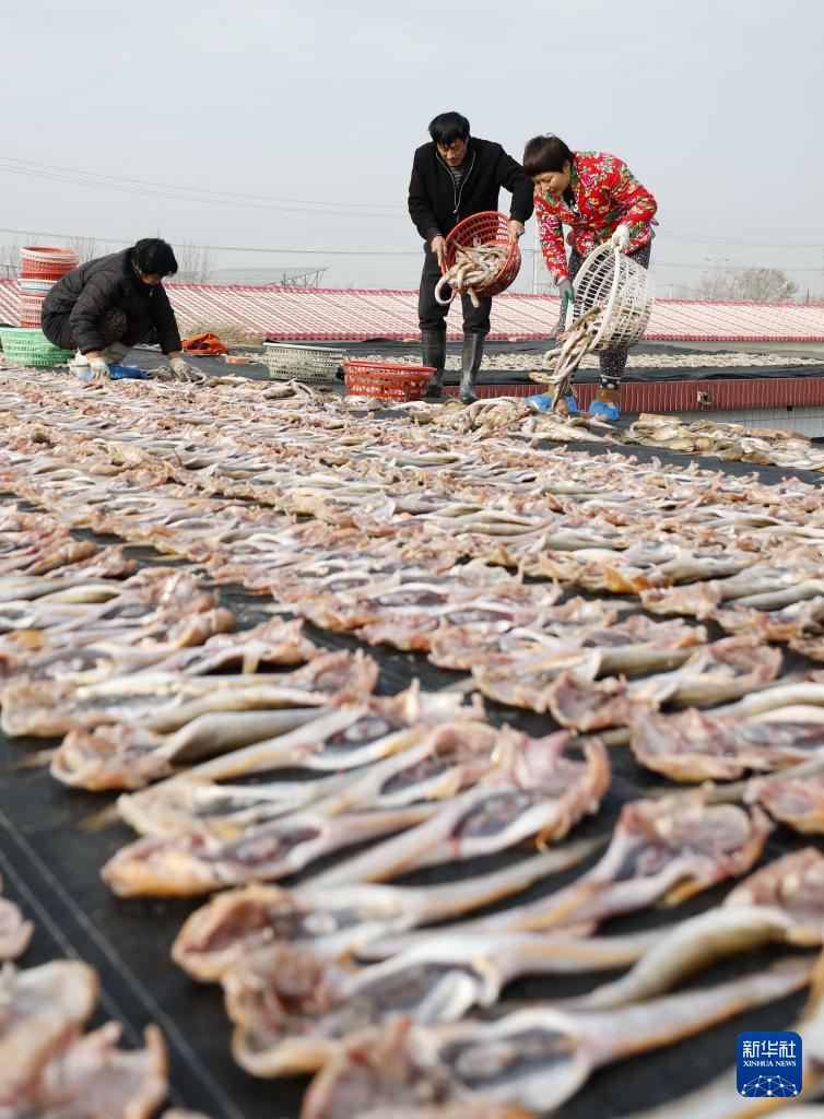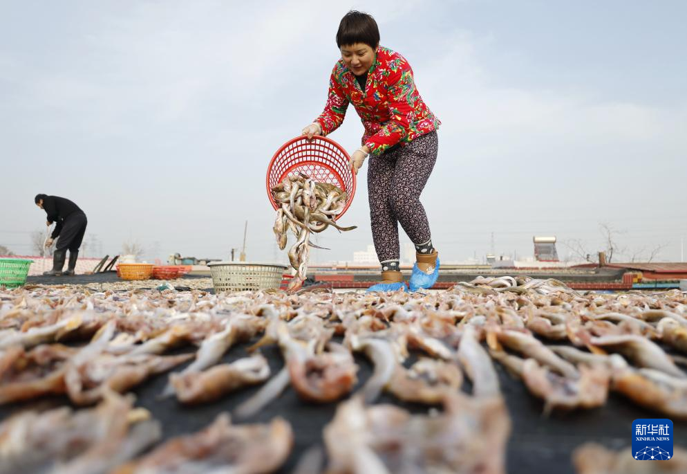 初冬時(shí)節(jié),河北省唐山市豐南區(qū)黑沿子鎮(zhèn)的漁民利用晴好天氣,將捕撈的魚蝦等海產(chǎn)品進(jìn)行加工、晾曬,供應(yīng)市場(chǎng)。