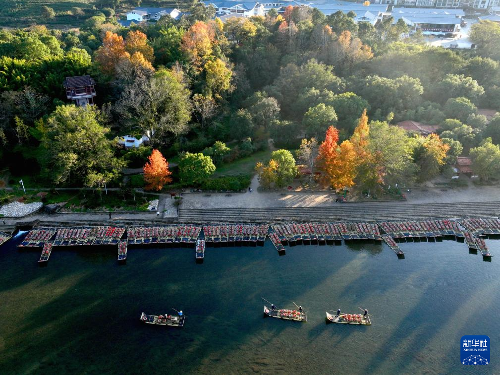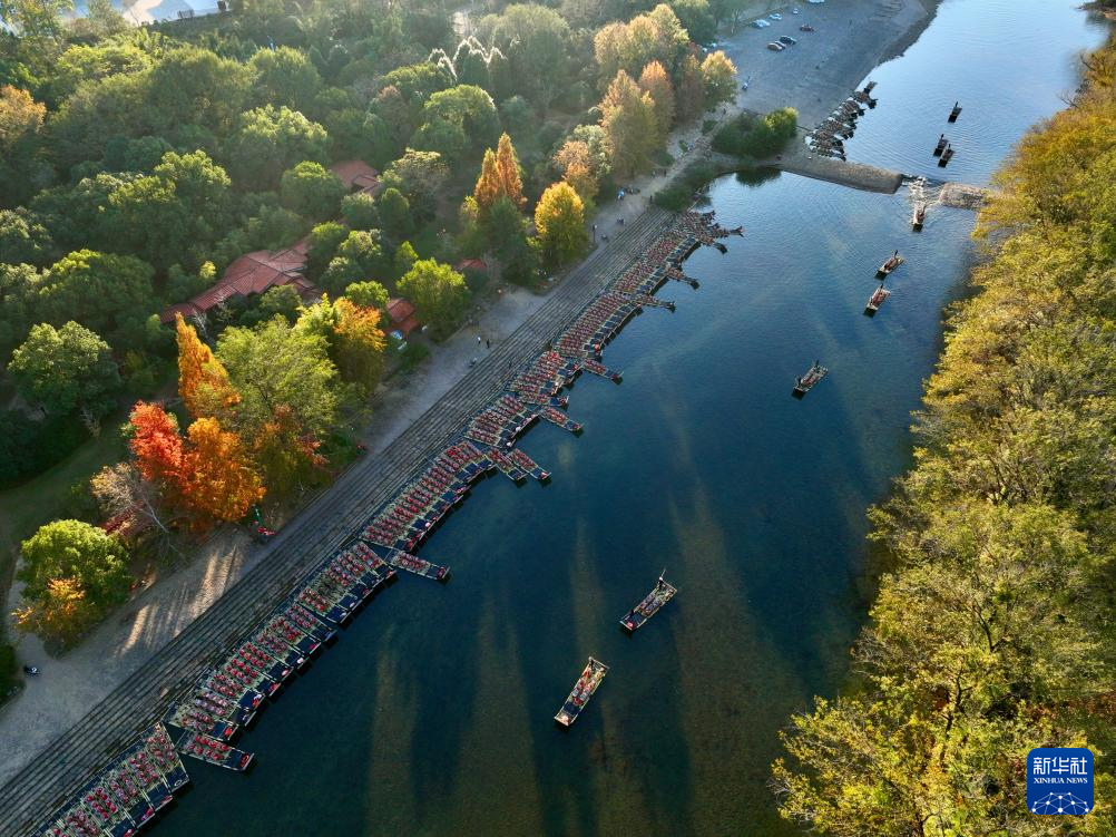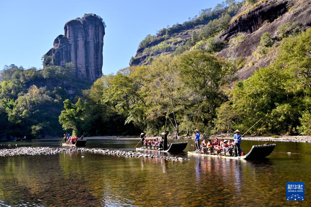 近日,福建武夷山天藍(lán)水碧,綠水青山中色彩斑斕的楓樹(shù)、水杉等林木點(diǎn)綴其間,呈現(xiàn)別樣的冬日景致,吸引游客前來(lái)旅游休閑。