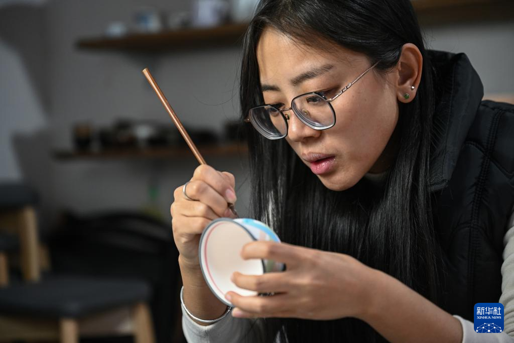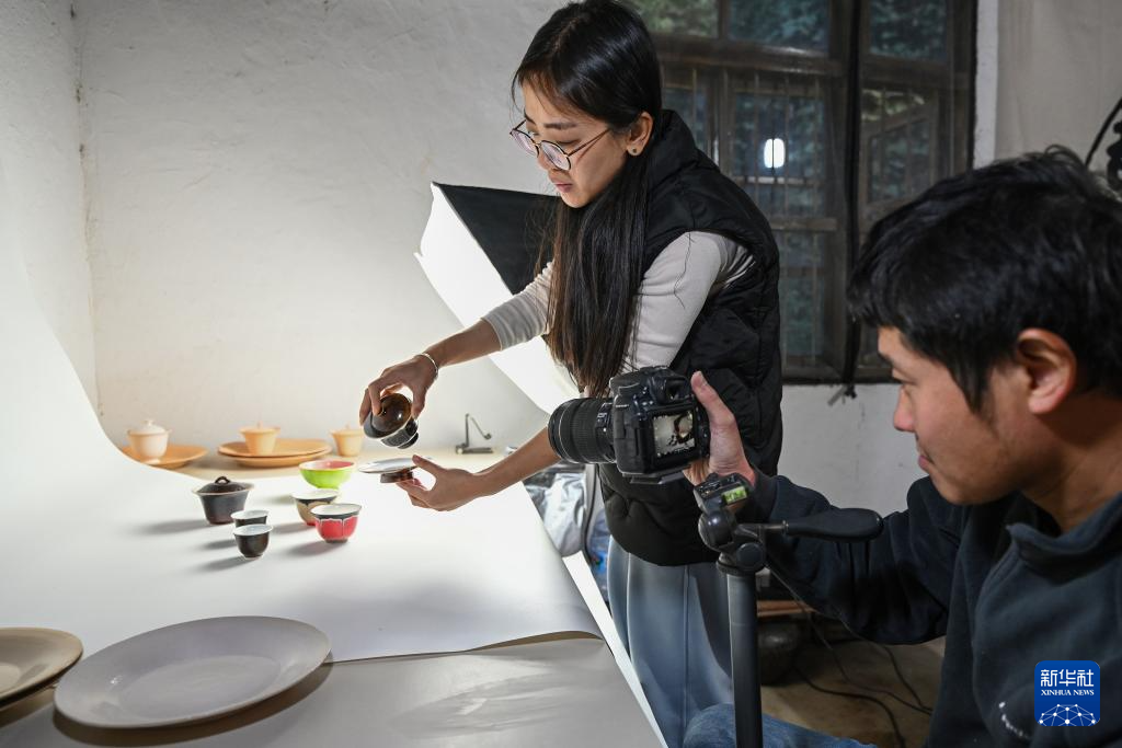 12月16日,吳澤緘和馬靜文夫妻倆在工作室設(shè)計(jì)新瓷器。