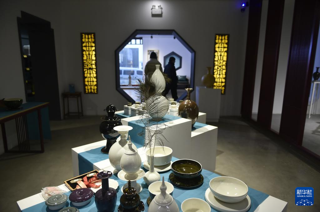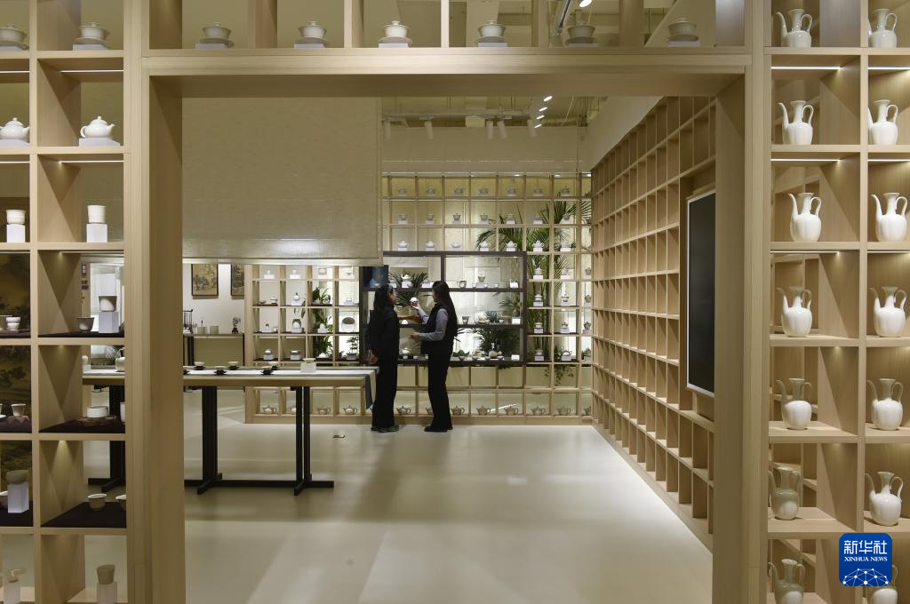 這是12月25日在河北省曲陽縣拍攝的一家定瓷生產(chǎn)企業(yè)的展廳。