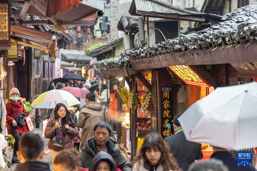 2026年1月1日,游客在重慶磁器口古鎮(zhèn)參觀游覽。