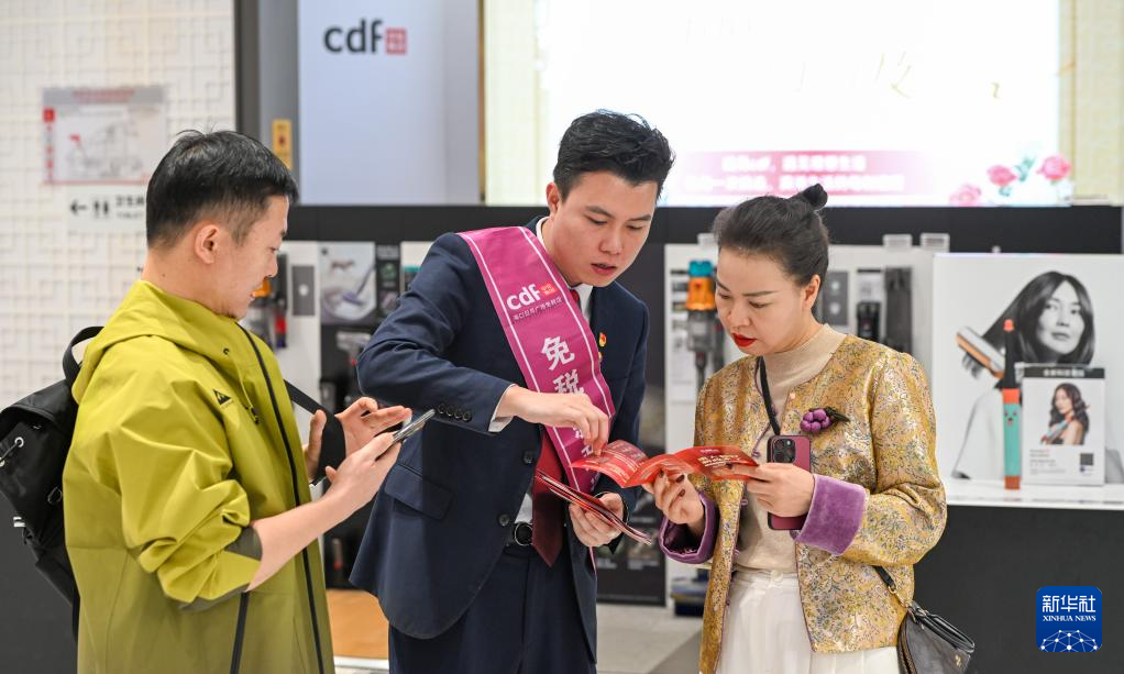 游客在中免集團(tuán)海口日月廣場免稅店選購免稅商品(1月1日攝)。