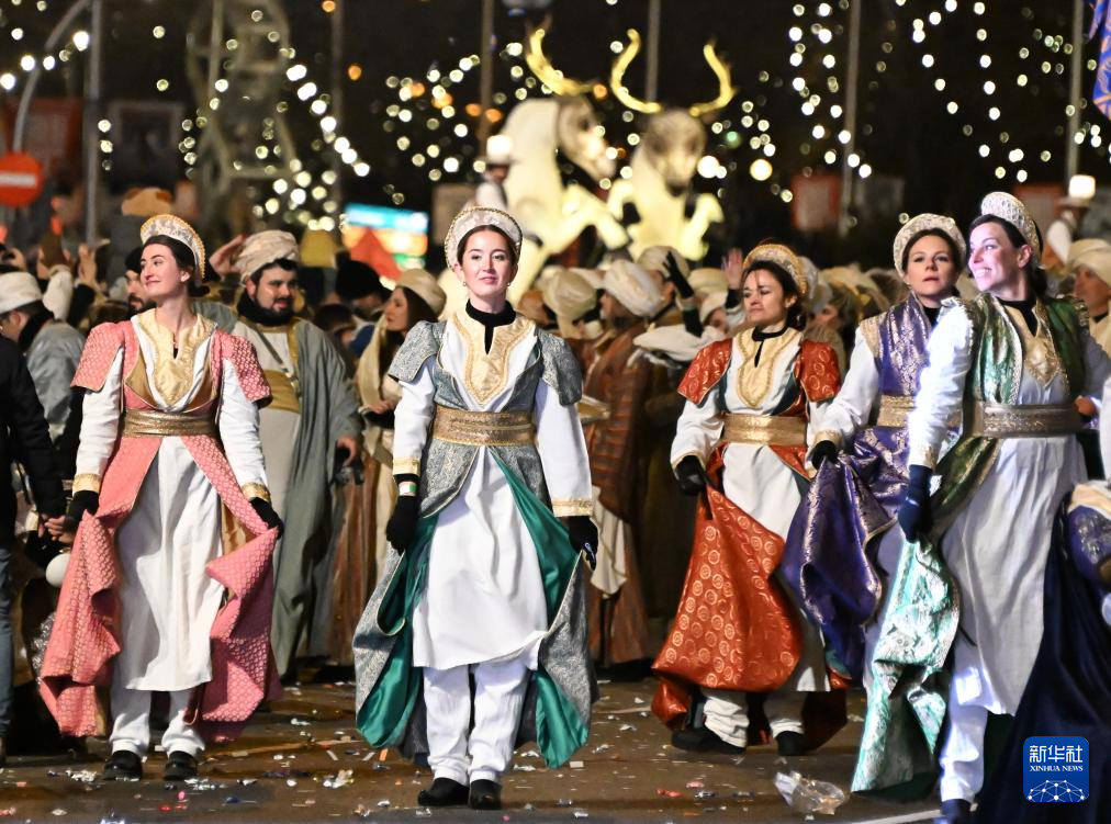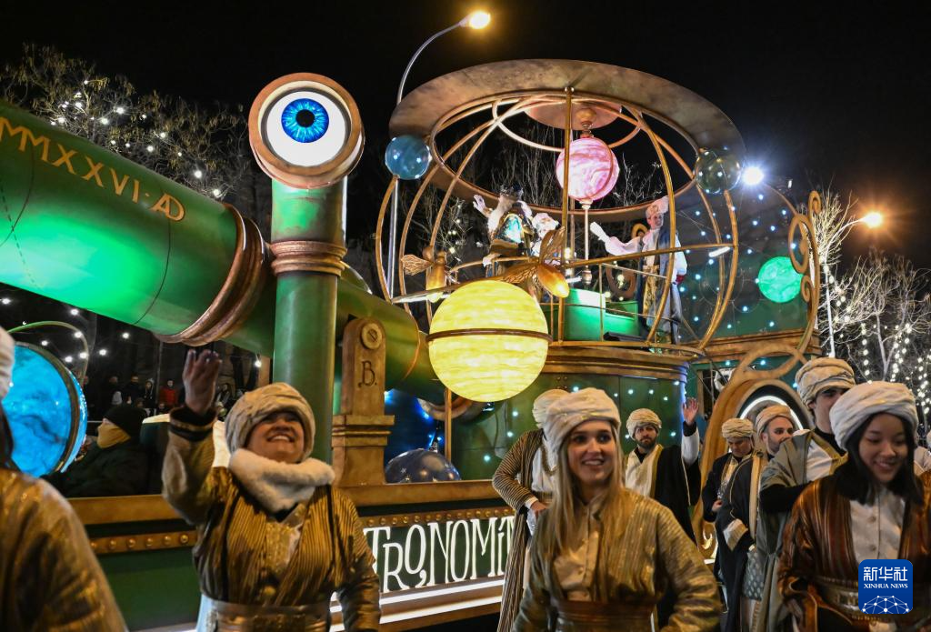 1月5日,表演隊(duì)伍在西班牙馬德里街頭巡游。