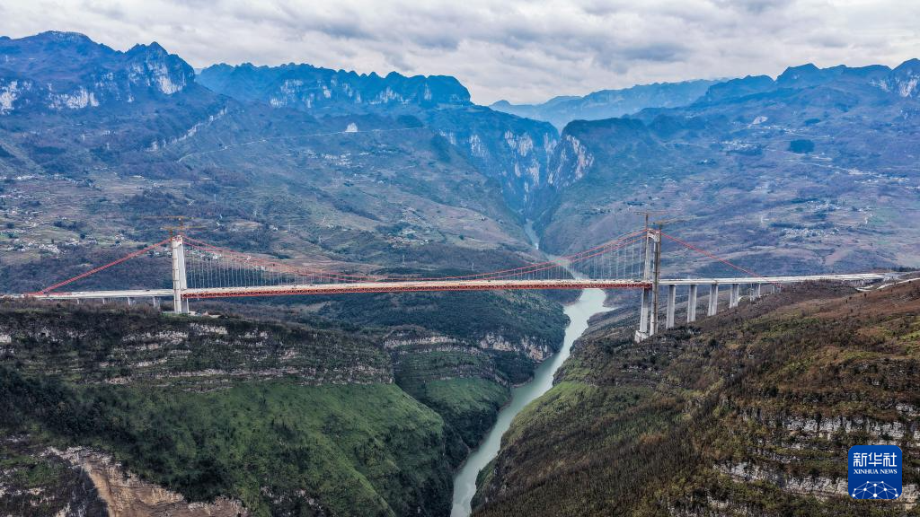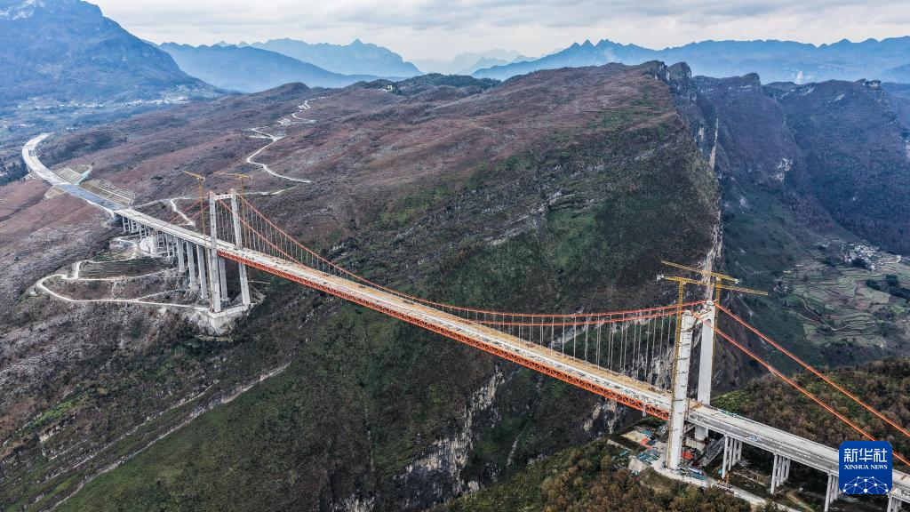 近日,貴州安(安順)盤(盤州)高速天門特大橋主體工程順利完工。天門特大橋是安順至盤州高速公路的重要控制性工程,大橋全長1553米,橋面距離峽谷水面約560米。