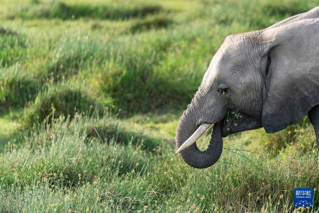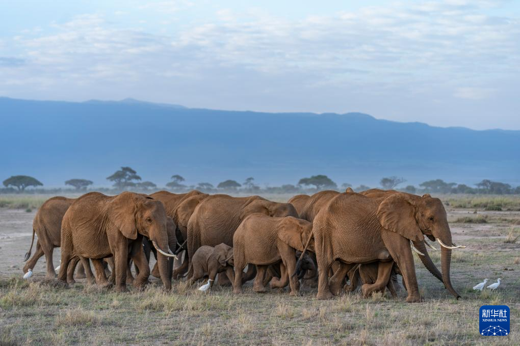 這是1月8日在肯尼亞安博塞利國(guó)家公園拍攝的象群。