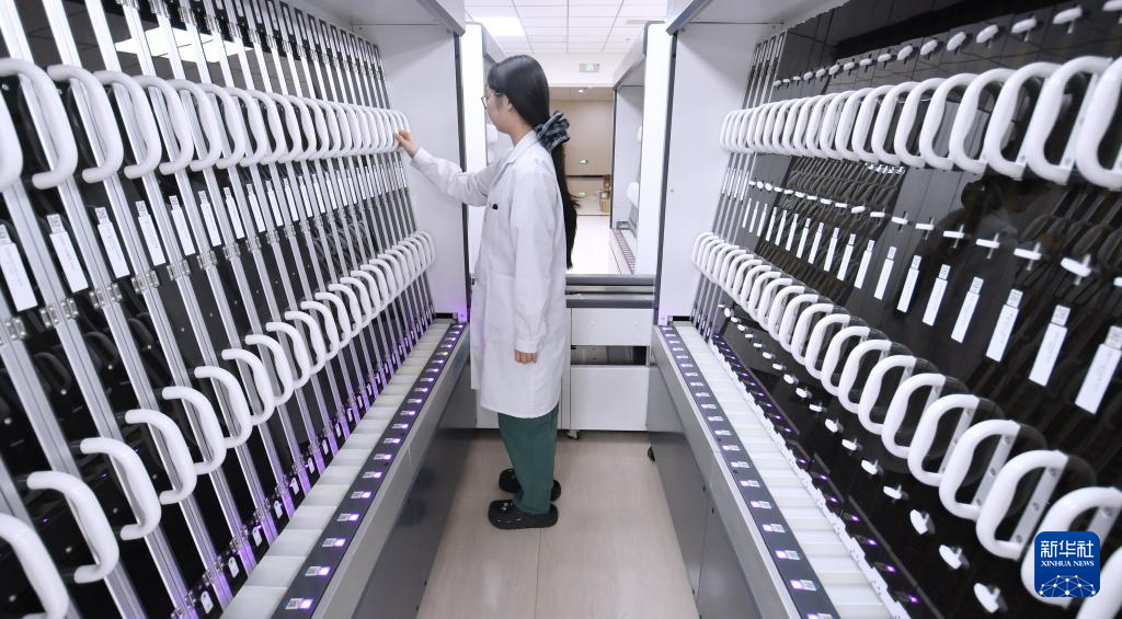 2月3日拍攝的北京安貞醫(yī)院通州院區(qū)庫發(fā)核一體化智慧藥房。